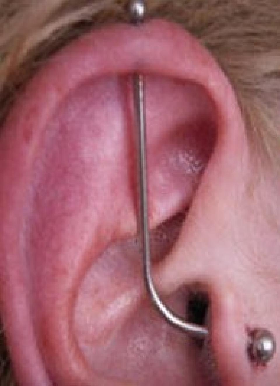 Piercing en travers de l' oreille Serge Tattoo Evolution